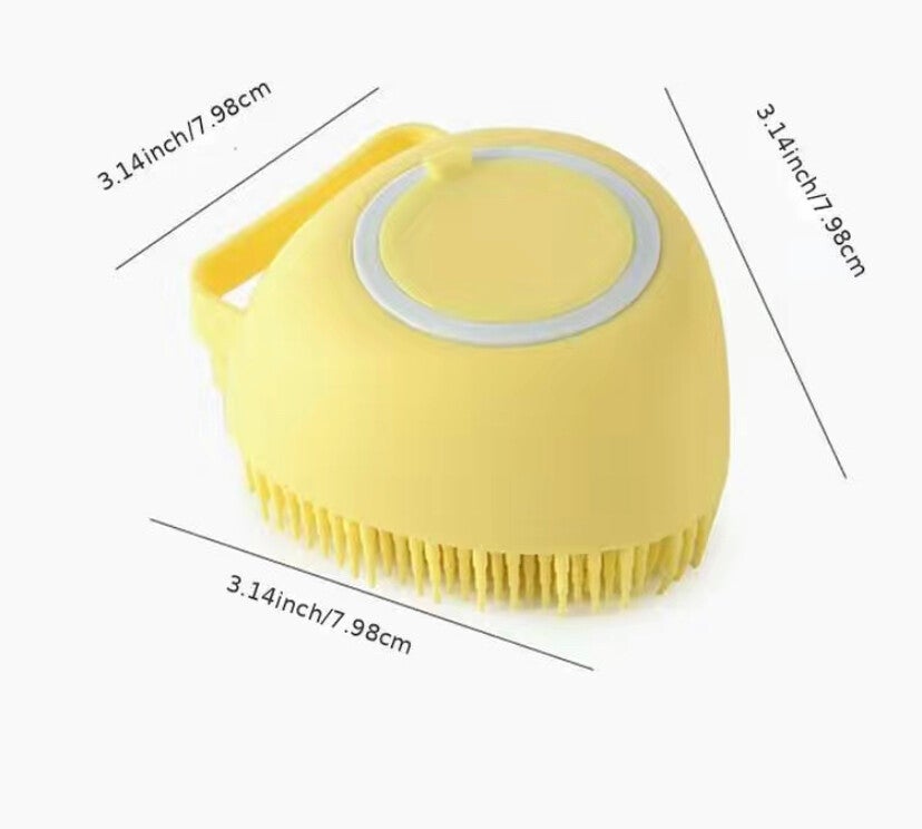 Silicone pet bath brush, put your pet's shampoo in to the top of the brush this will then foam up really well and come out of the brush as you brush your pet in the shower/bath. This will make sure all your pets coat is getting throughly cleaned, and will massage your pets skin and fur well