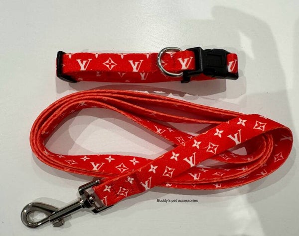 RED CHEWY VUITTON COLLAR & LEAD