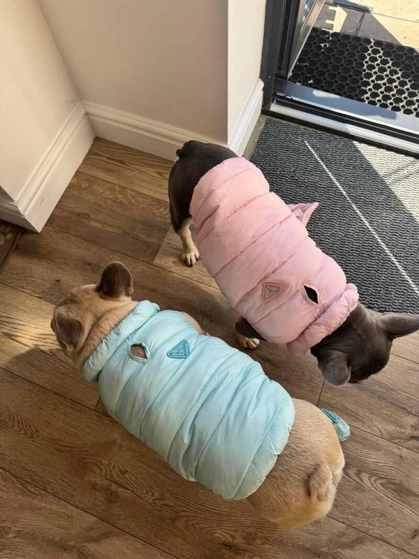 Luxury quality coat for your pooches, these have a stretch to them and have the hole for the leash! My frenchies wear XXL as our items are small fittings